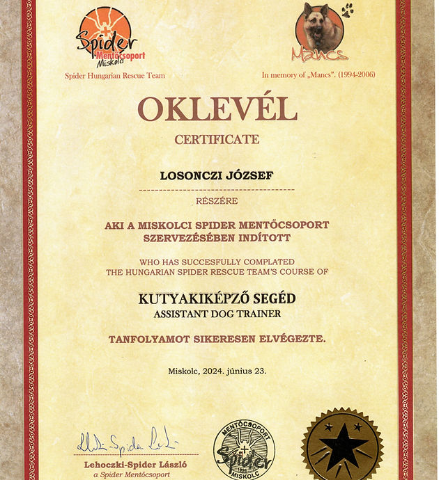 Unser Teamleiter, József Losonczi, arbeitete viele Jahre lang mit Lehoczki‑Spider László zusammen. Die von ihm übermittelten fachlichen Grundlagen, seine Haltung und seine Hingabe prägen die Arbeit unseres Teams bis heute. Seine Methoden und Lehren sind nicht nur Erinnerungen, sondern fester Bestandteil unserer täglichen Such‑ und Rettungspraxis.